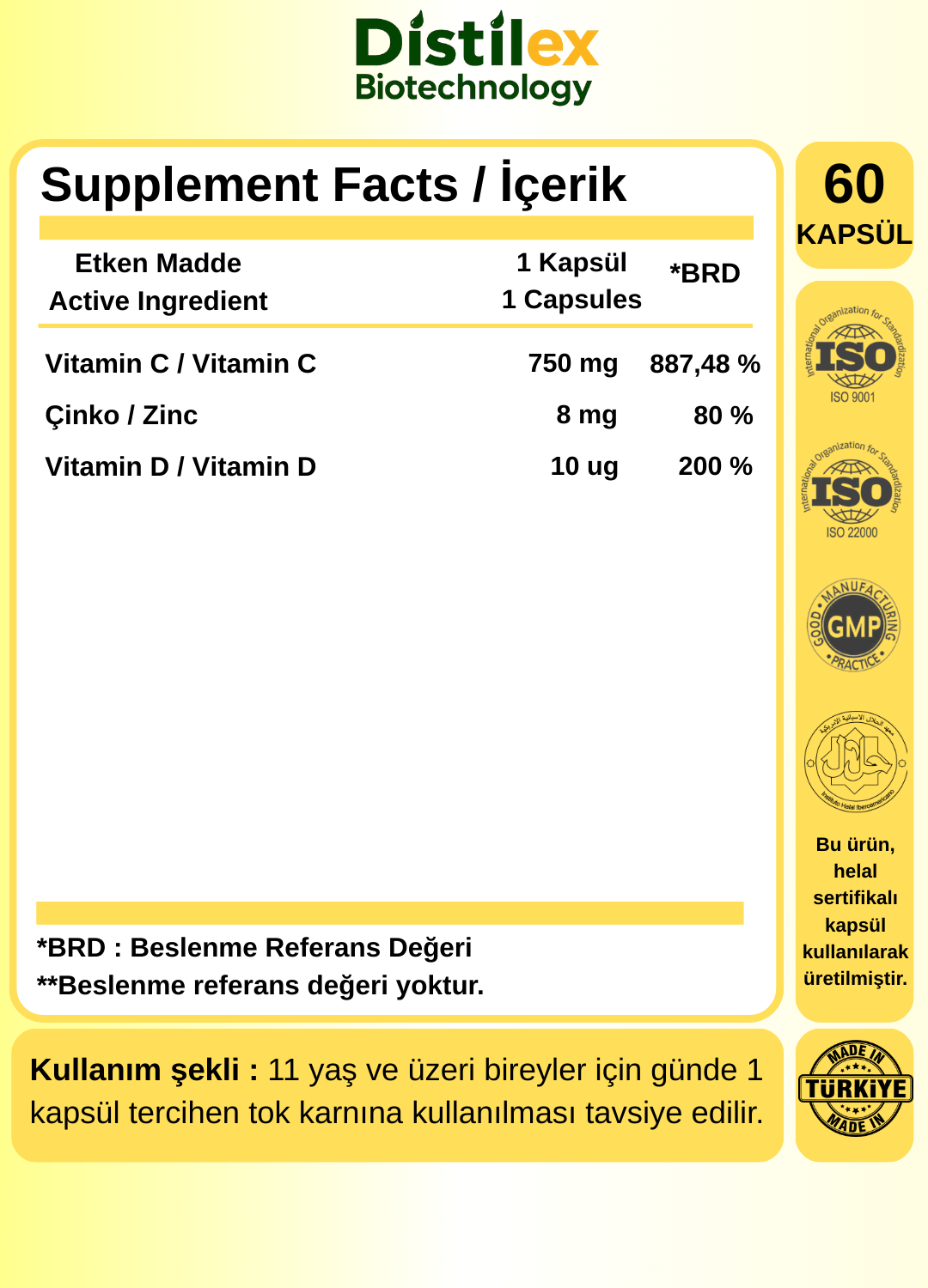 C-Zindex® 60 kapsül, içerik şeffaflığı ve standart üretim süreçleri esas alınarak hazırlanmıştır.