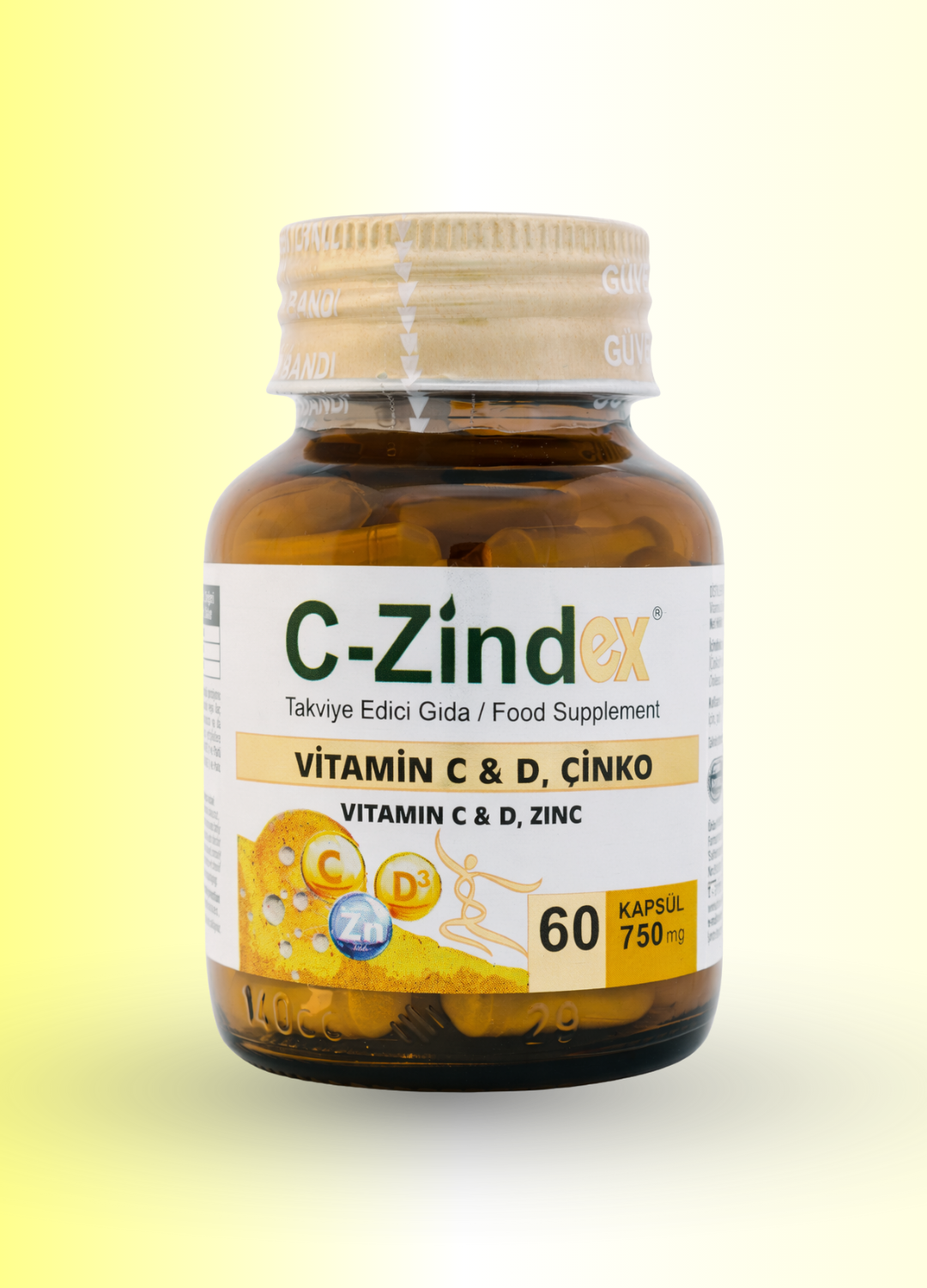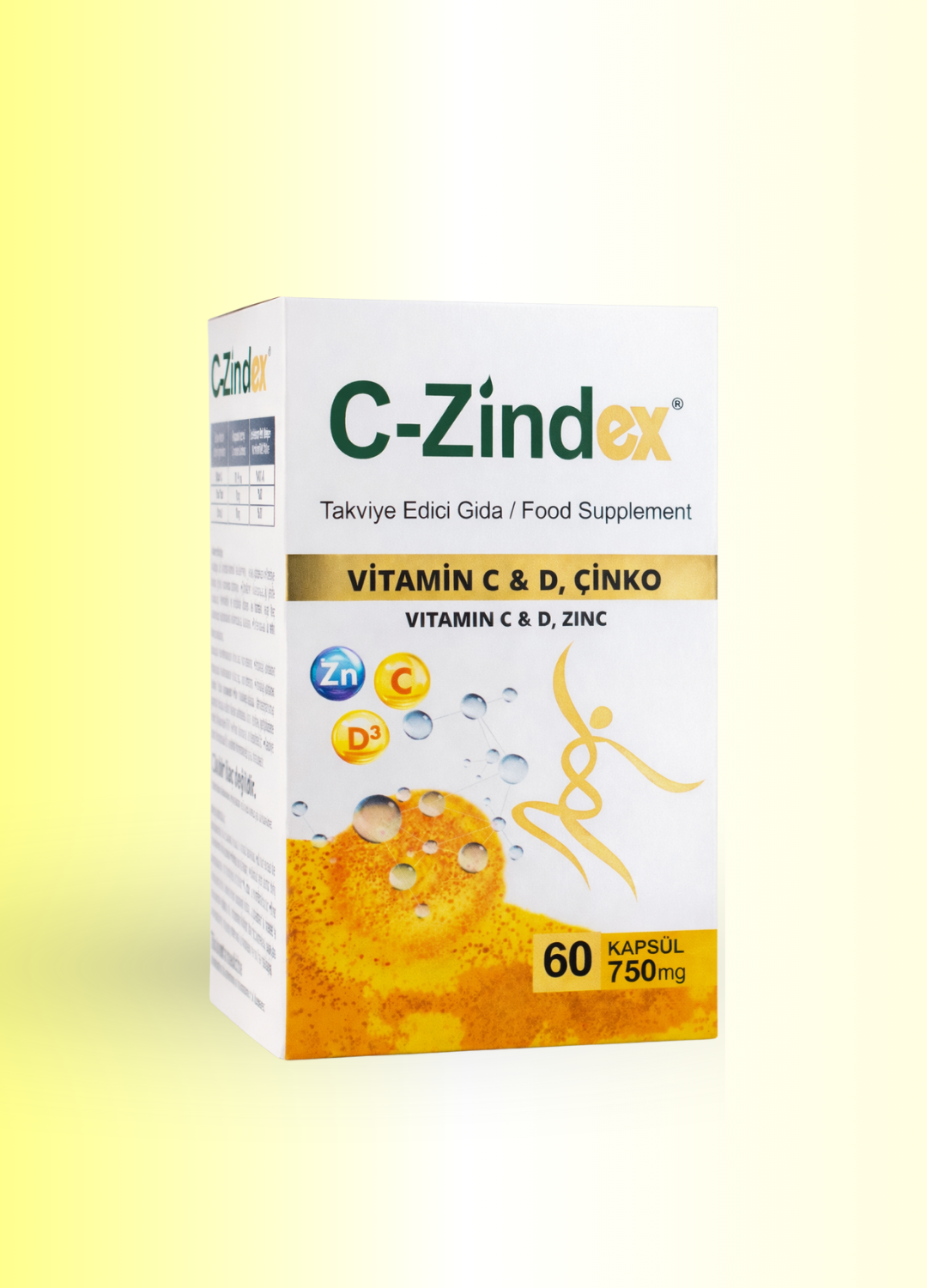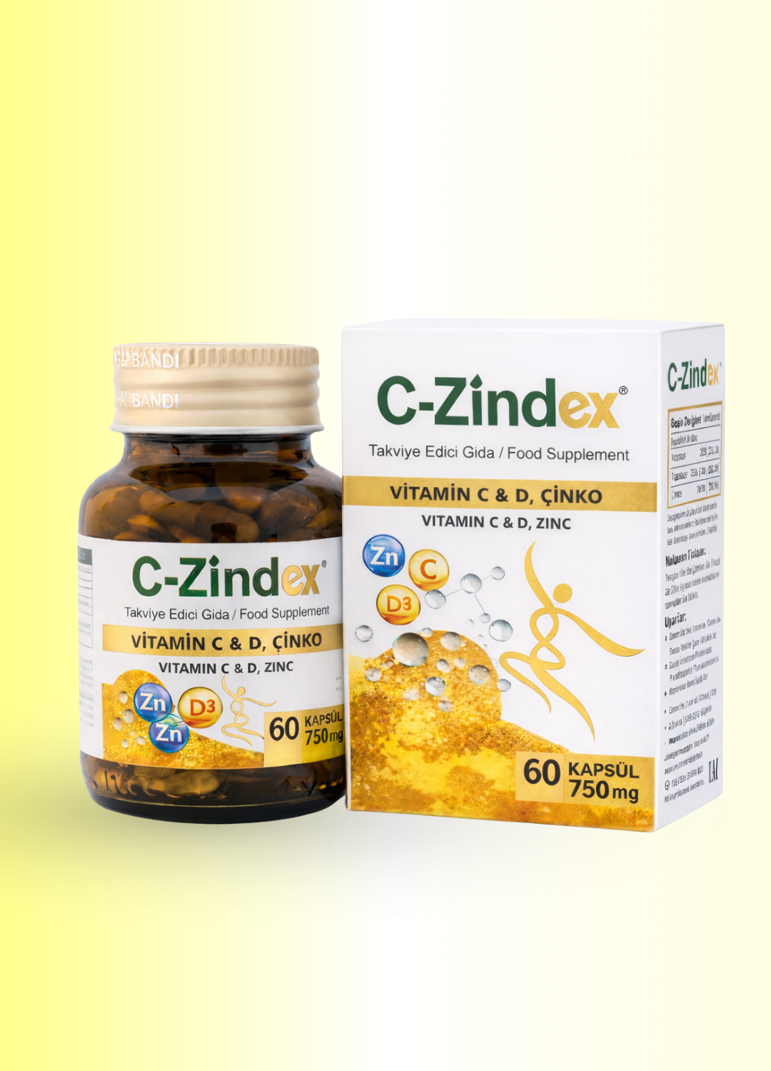 C-Zindex®, C vitamini, D vitamini ve çinko içeren bir takviye edici gıdadır. Bu bileşenlerin bir araya getirildiği formül, kapsül formda sunulmaktadır.