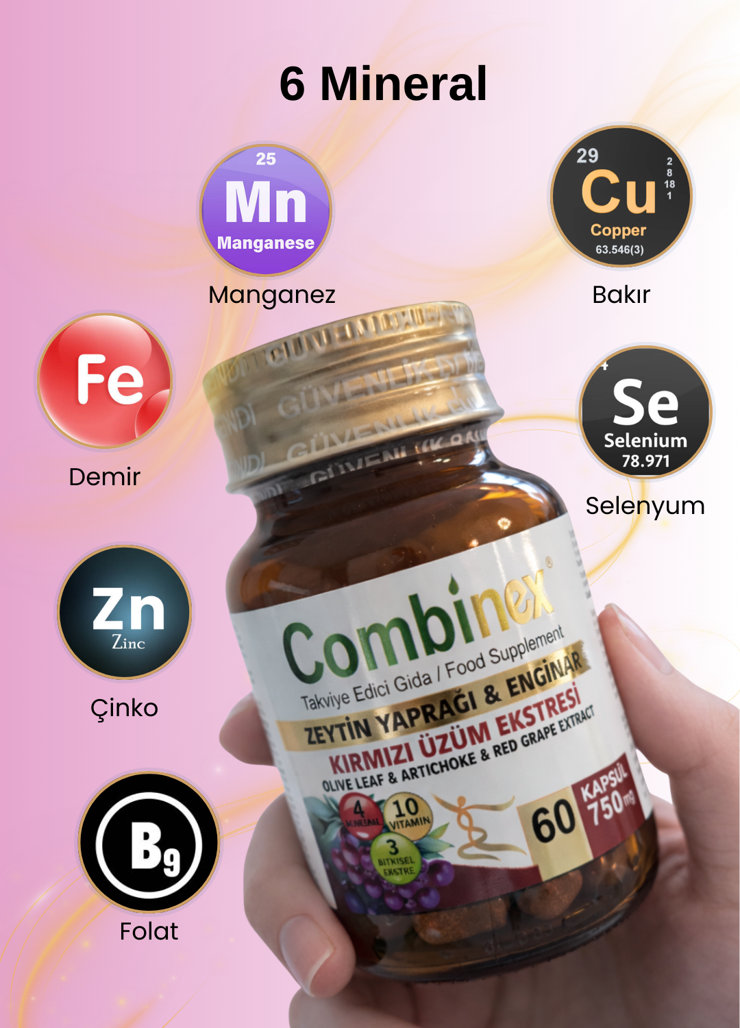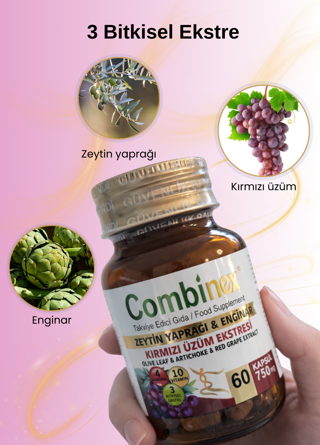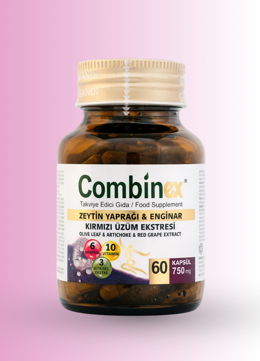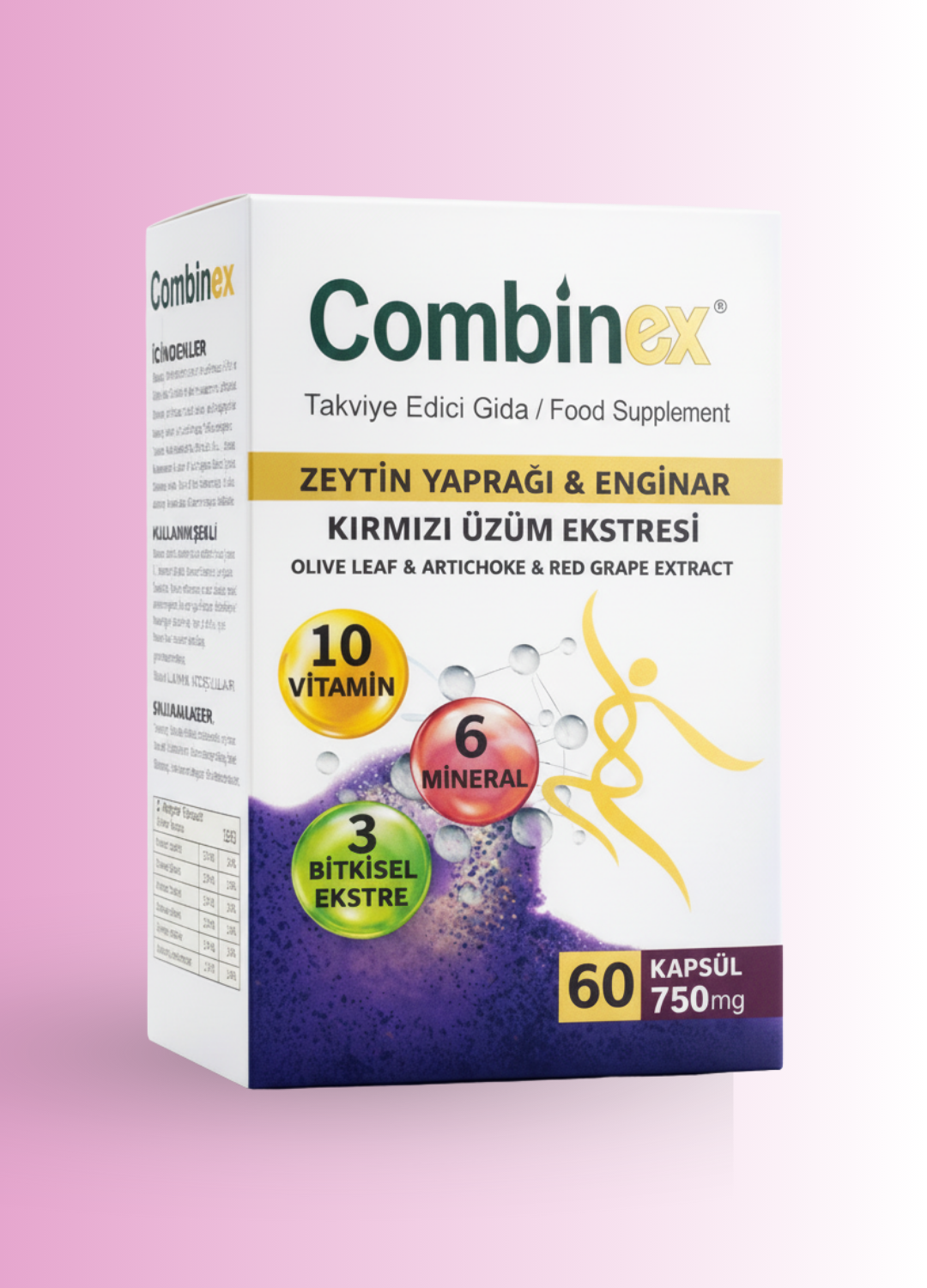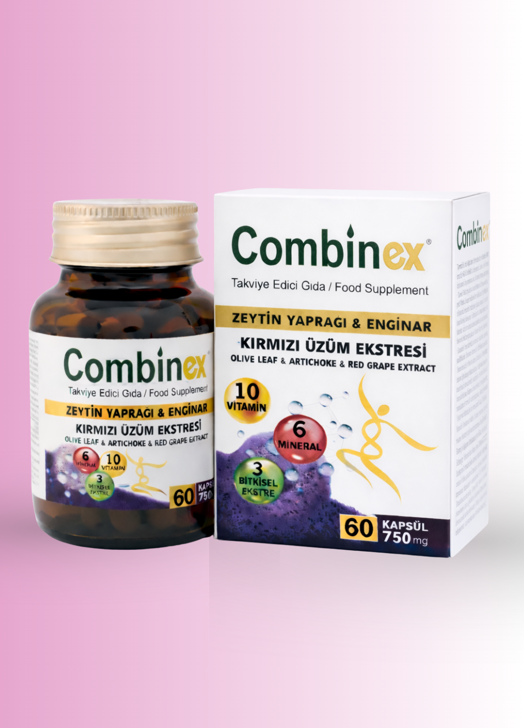 Combinex®, zeytin yaprağı, enginar ve kırmızı üzüm ekstreleri ile birlikte 10 vitamin ve 6 mineral içeren, normal beslenmeyi takviye etmek amacıyla geliştirilmiş çok bileşenli takviye edici gıdadır. Bitkisel ekstreler ve mikro besin öğeleri kapsül formda bir araya getirilerek sunulmaktadır.
