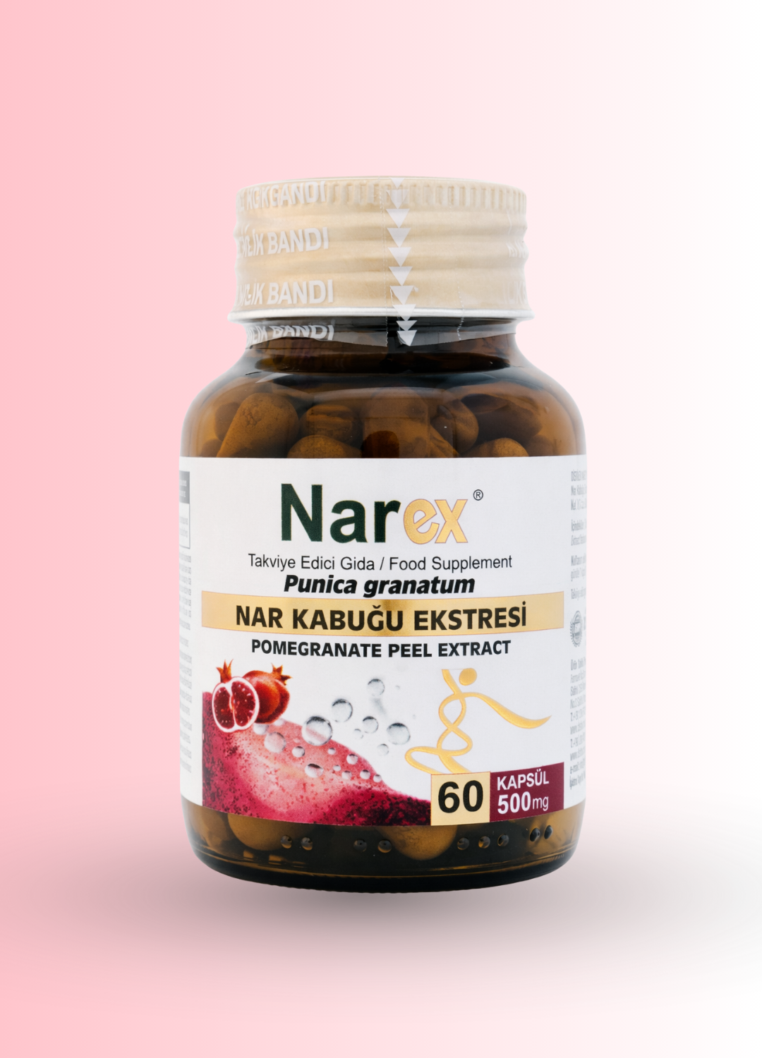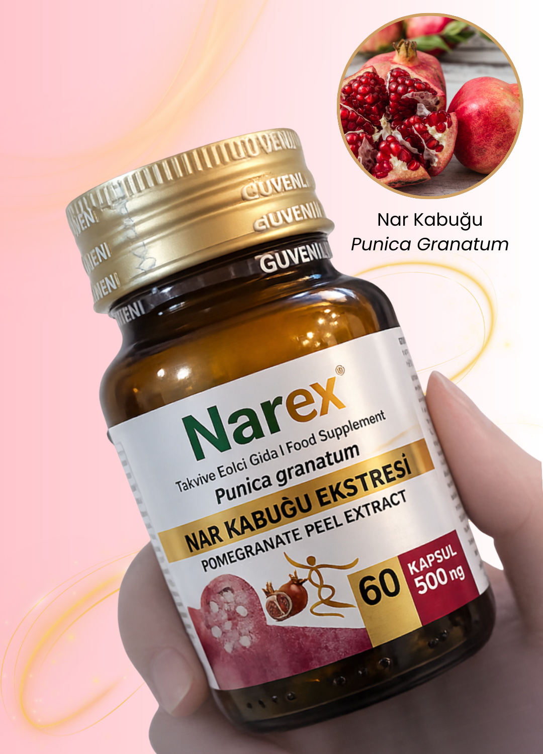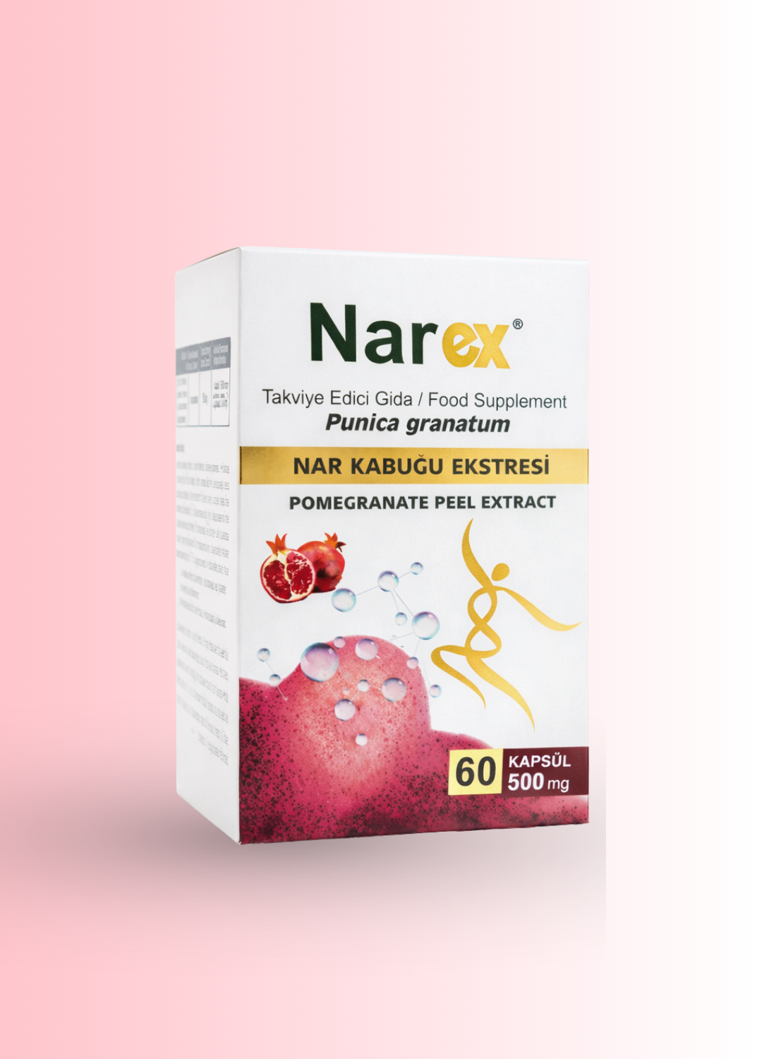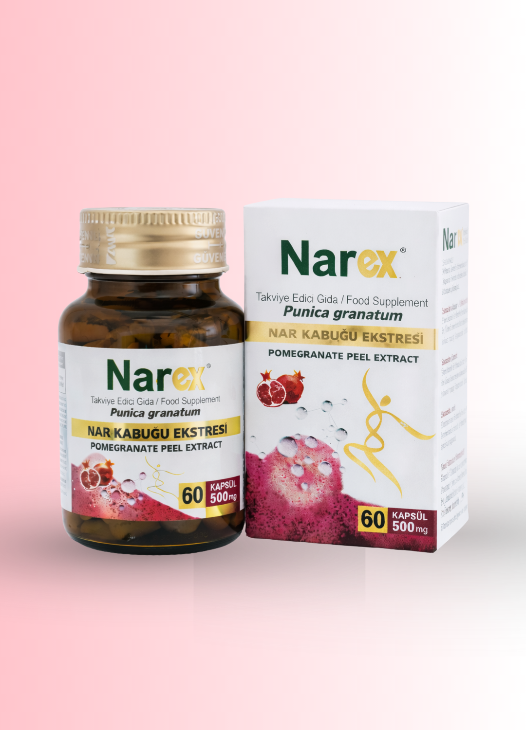 Narex®, nar kabuğu ekstresi içeren ve normal beslenmeyi takviye etmek amacıyla formüle edilmiş takviye edici gıdadır. Kapsül formda sunulmaktadır.